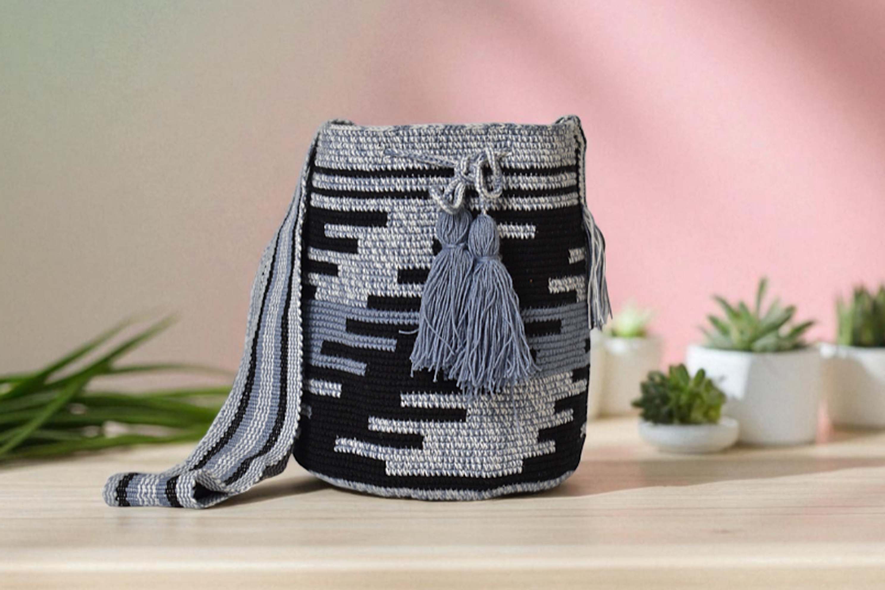 Descipcion: Hecho a mano en tejido a crochet, color gris y cafe oscuro, decorada con motas, envío incluido