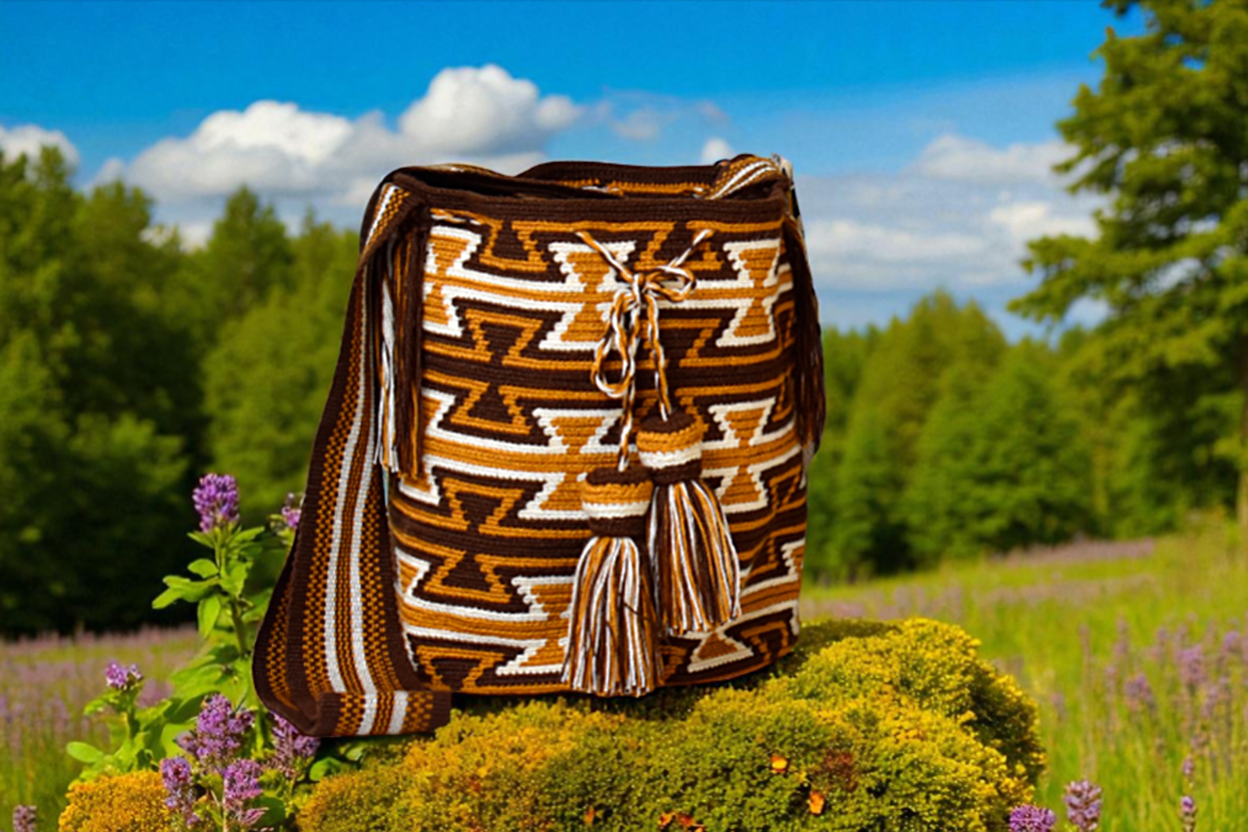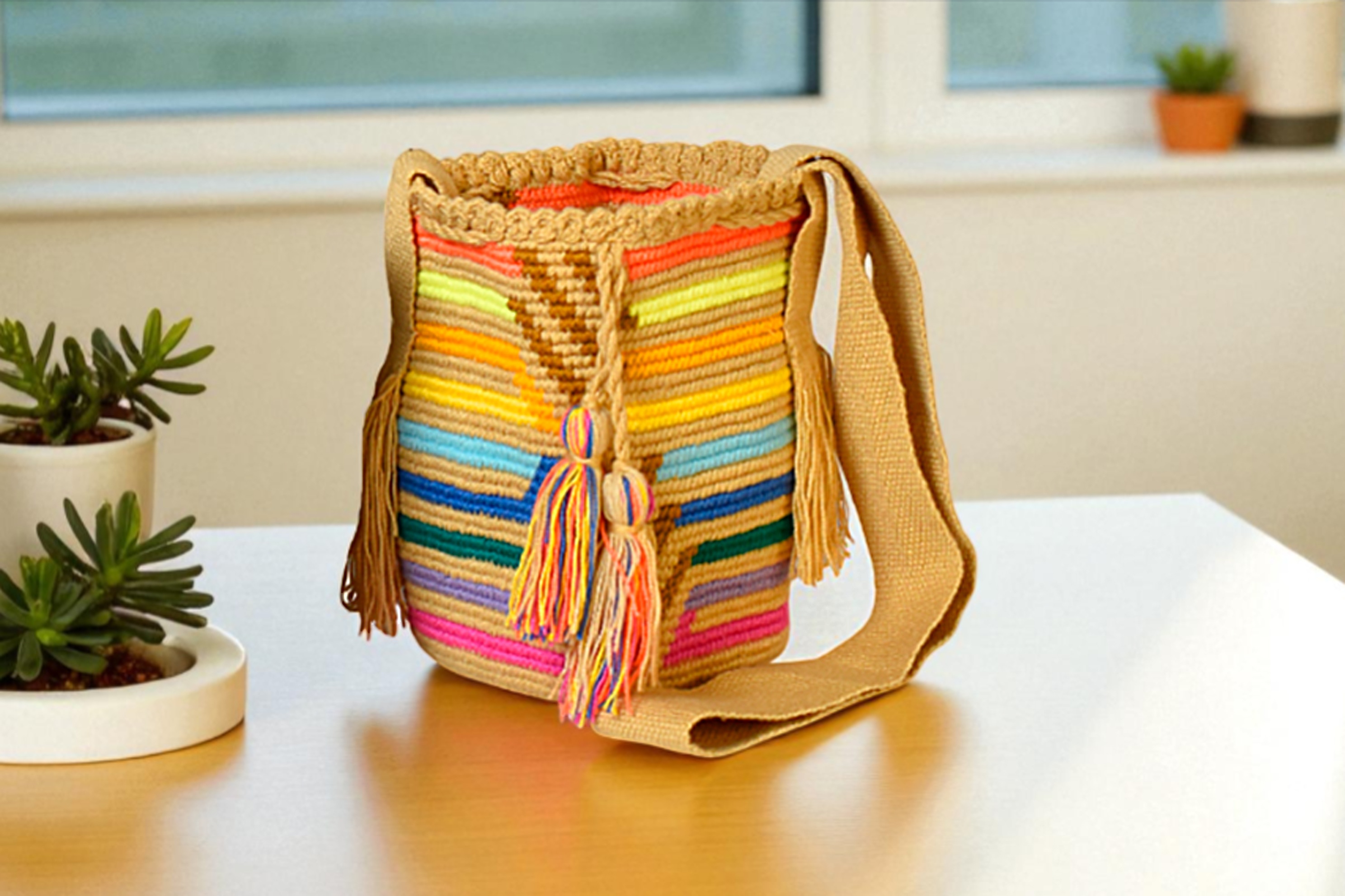 Descipcion: Hecha a mano en tejido a crochet, color tierra, beige, mostaza, envío incluido.