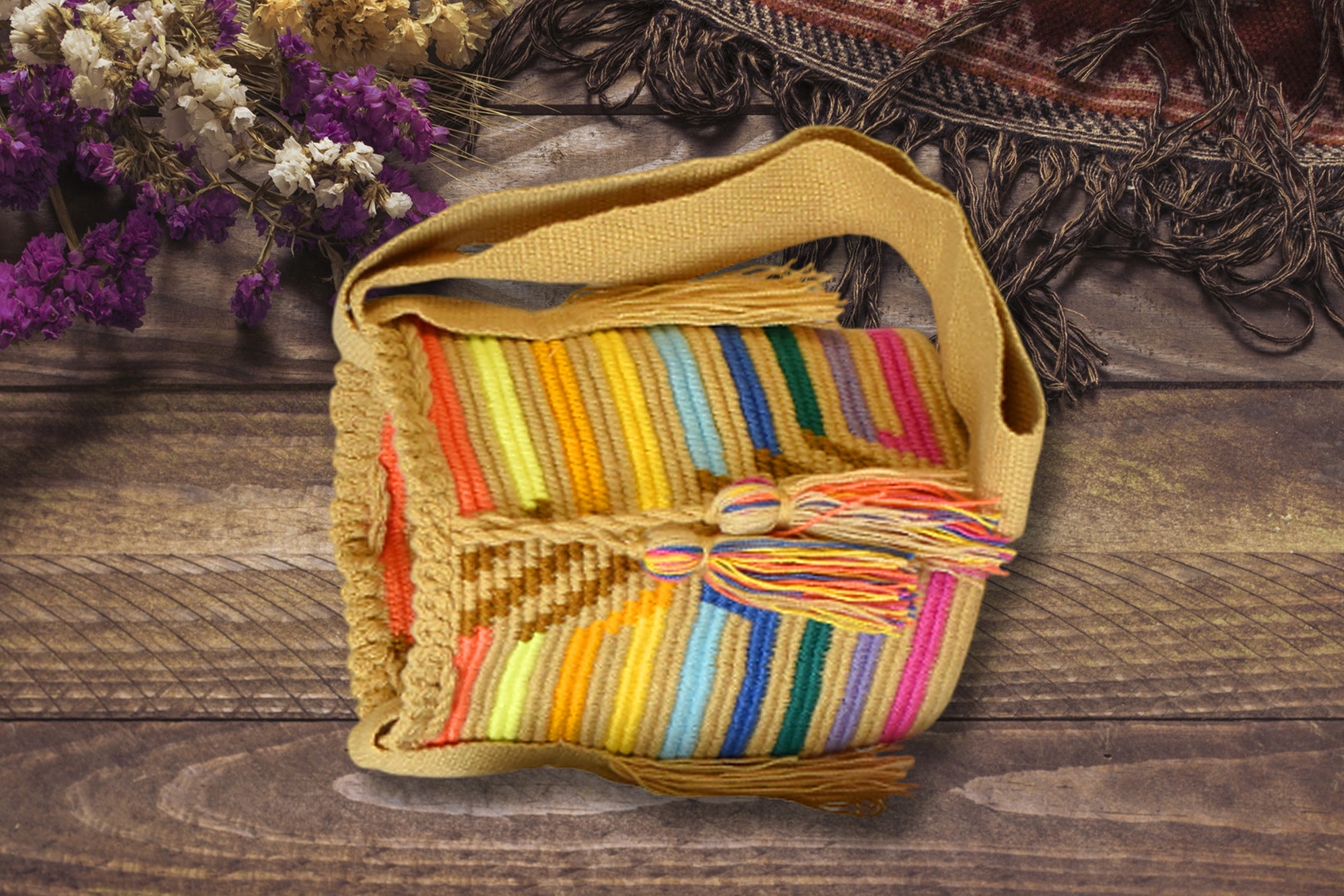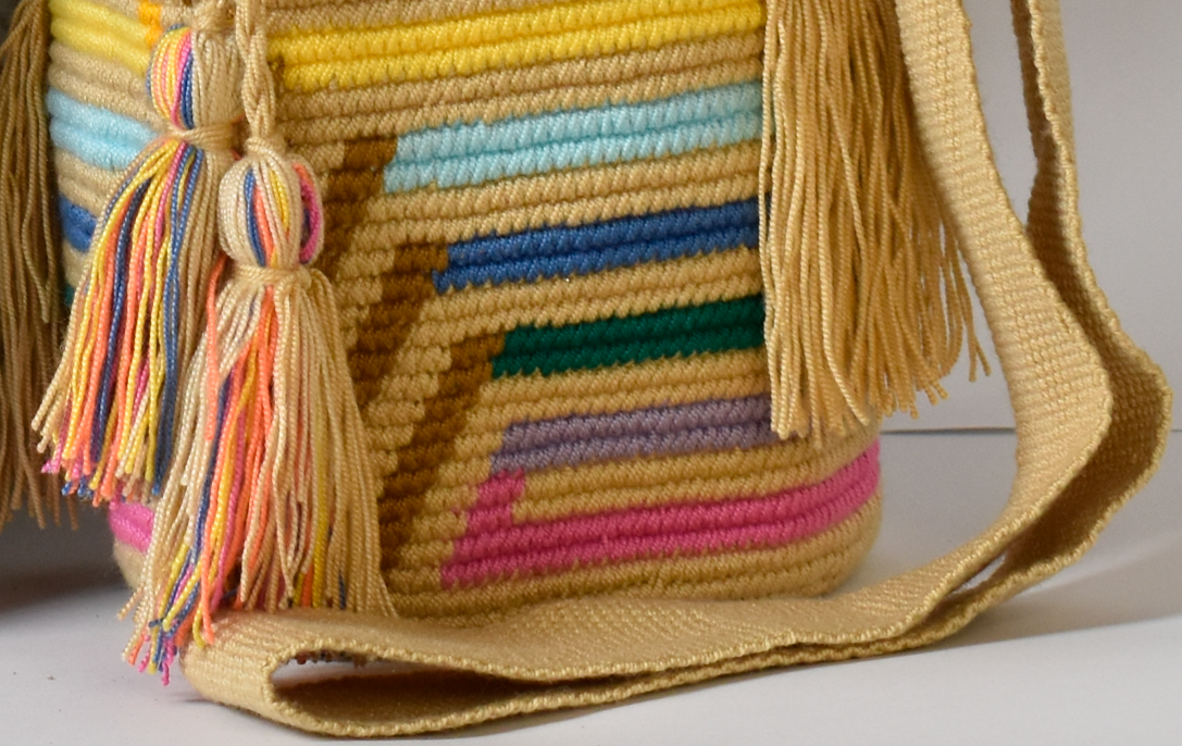 Descipcion: Hecho a mano en tejido a crochet, con colores surtidos, adornado recamada color crema, envío incluido