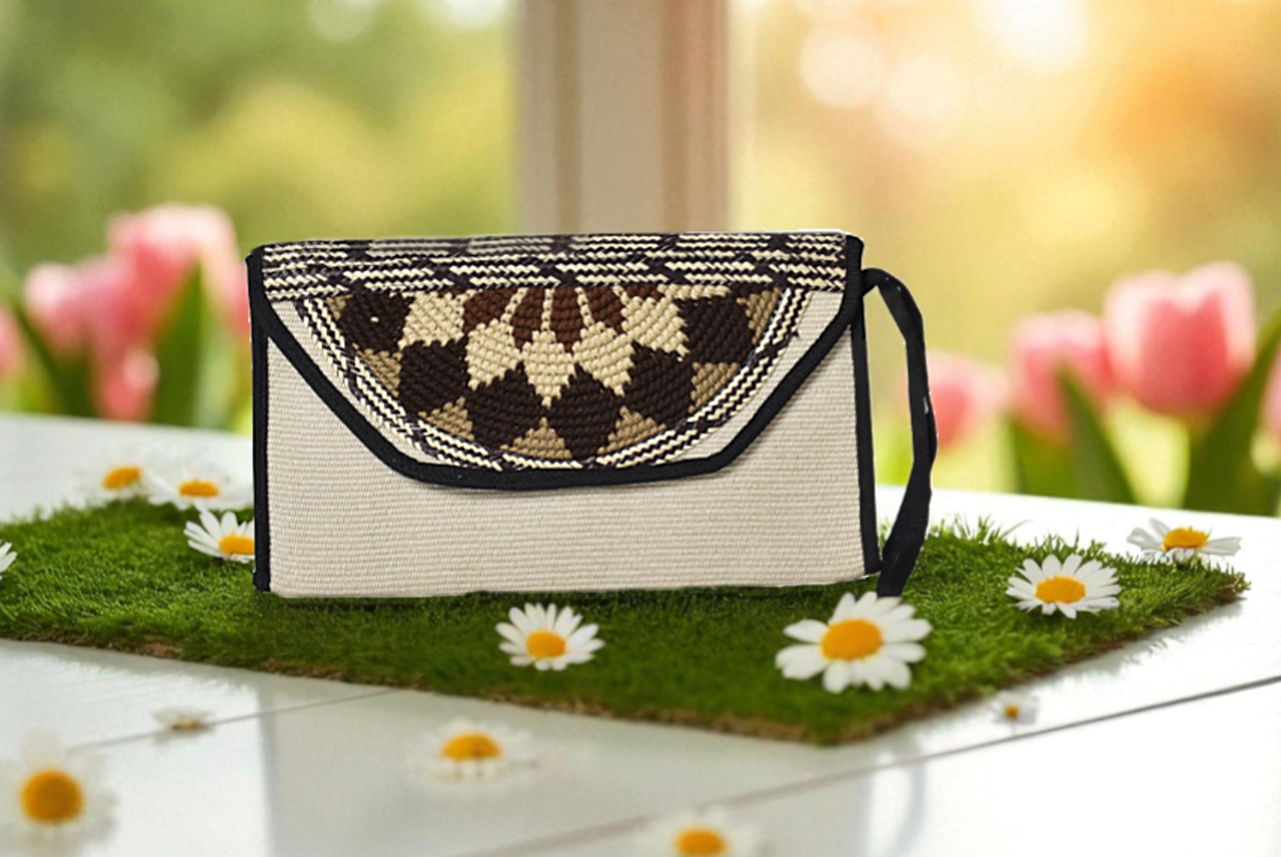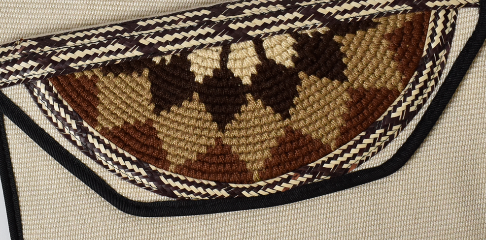 Descipcion: Hecho a mano con tejido en a crochet, caña flecha, en telar vertical, color tabaco, negro y café, envío incluido