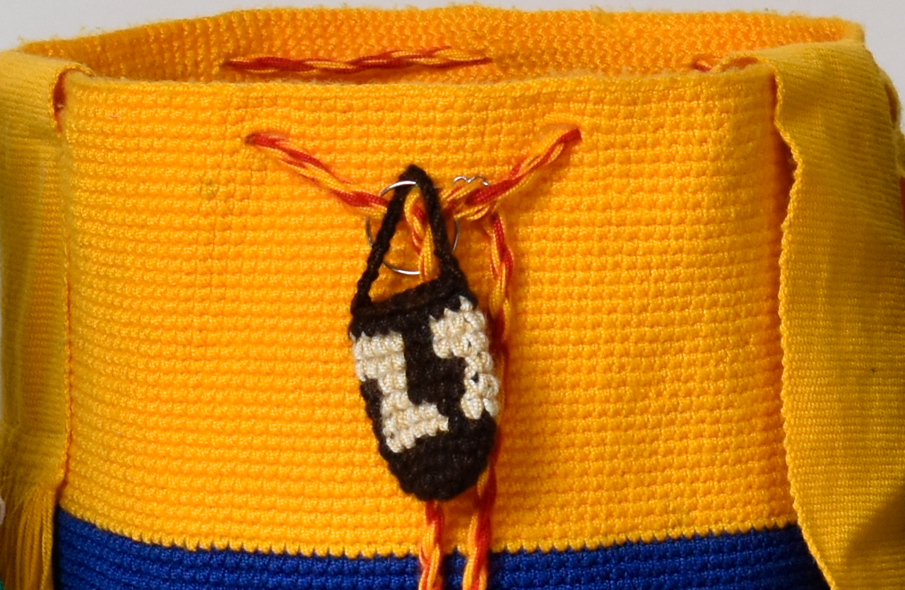 Descipcion: Mochila hecha a mano con tejido a crochet ,elaborada con hilo sintético, con colgante con un diámetro(ancho ) de 50 x25