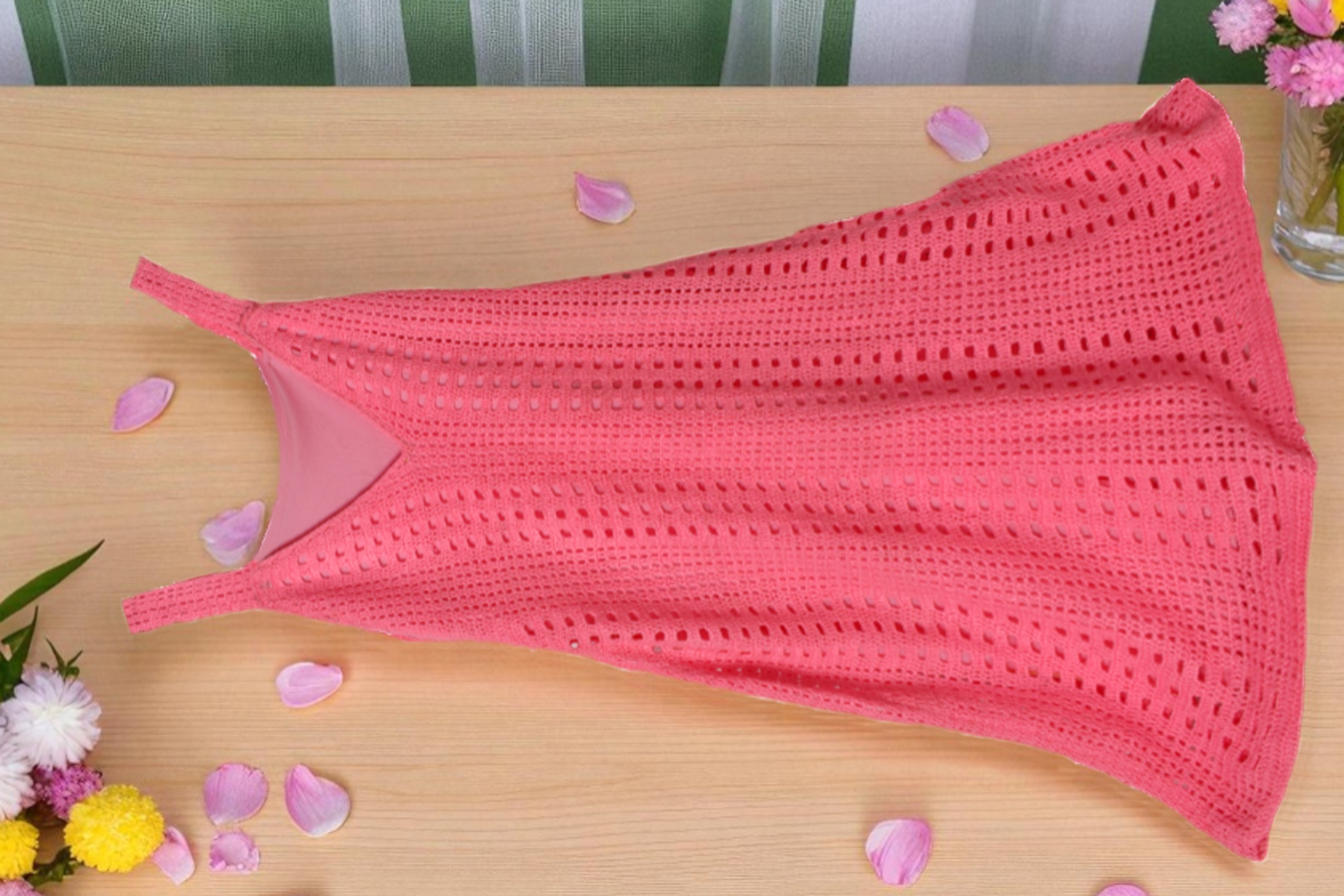 Descipcion: vestido hecho a mano tejido a crochet con hilo sintético, y punto alto con envió incluido