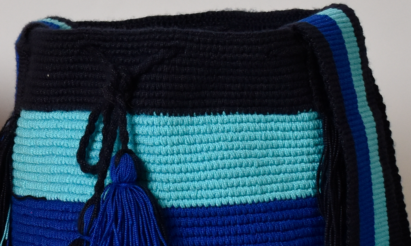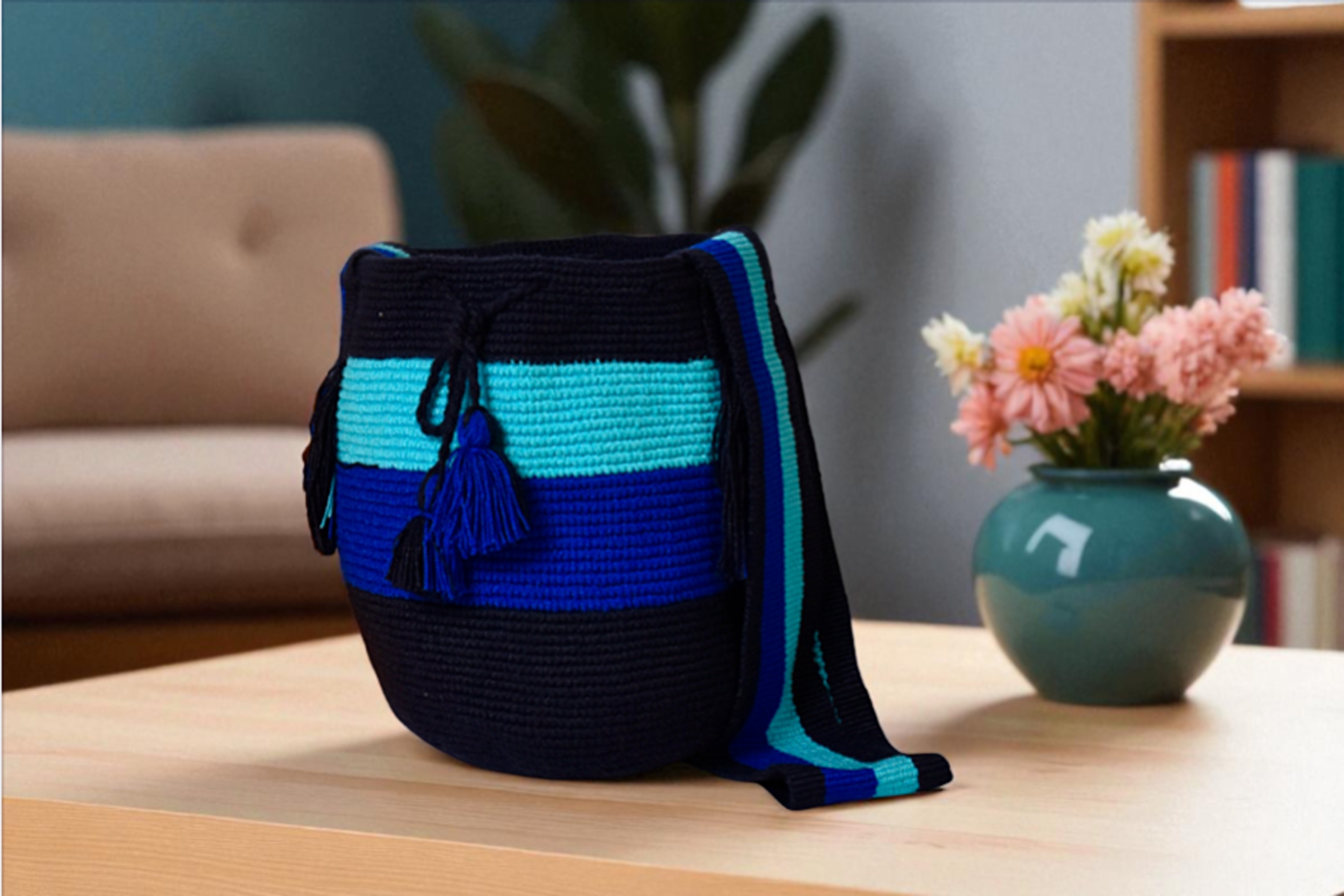 Descipcion: Hecho a mano en tejido a crochet, color azules diversos, decorada recamada con perla, envío incluido