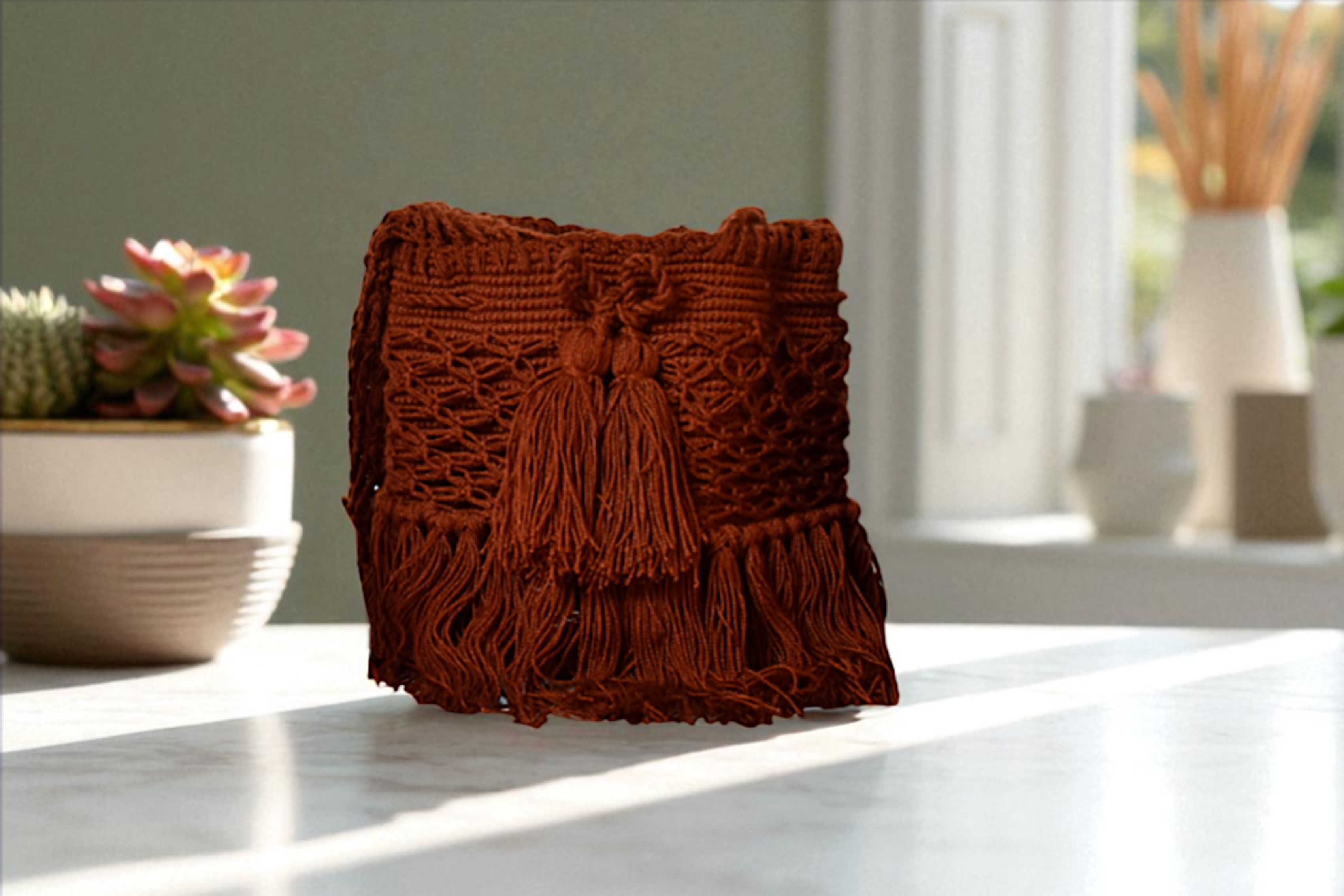 Descipcion: Hecho a mano en tejido a crochet, en colores surtidos colores café, venta y precio por unidad, envío incluido.