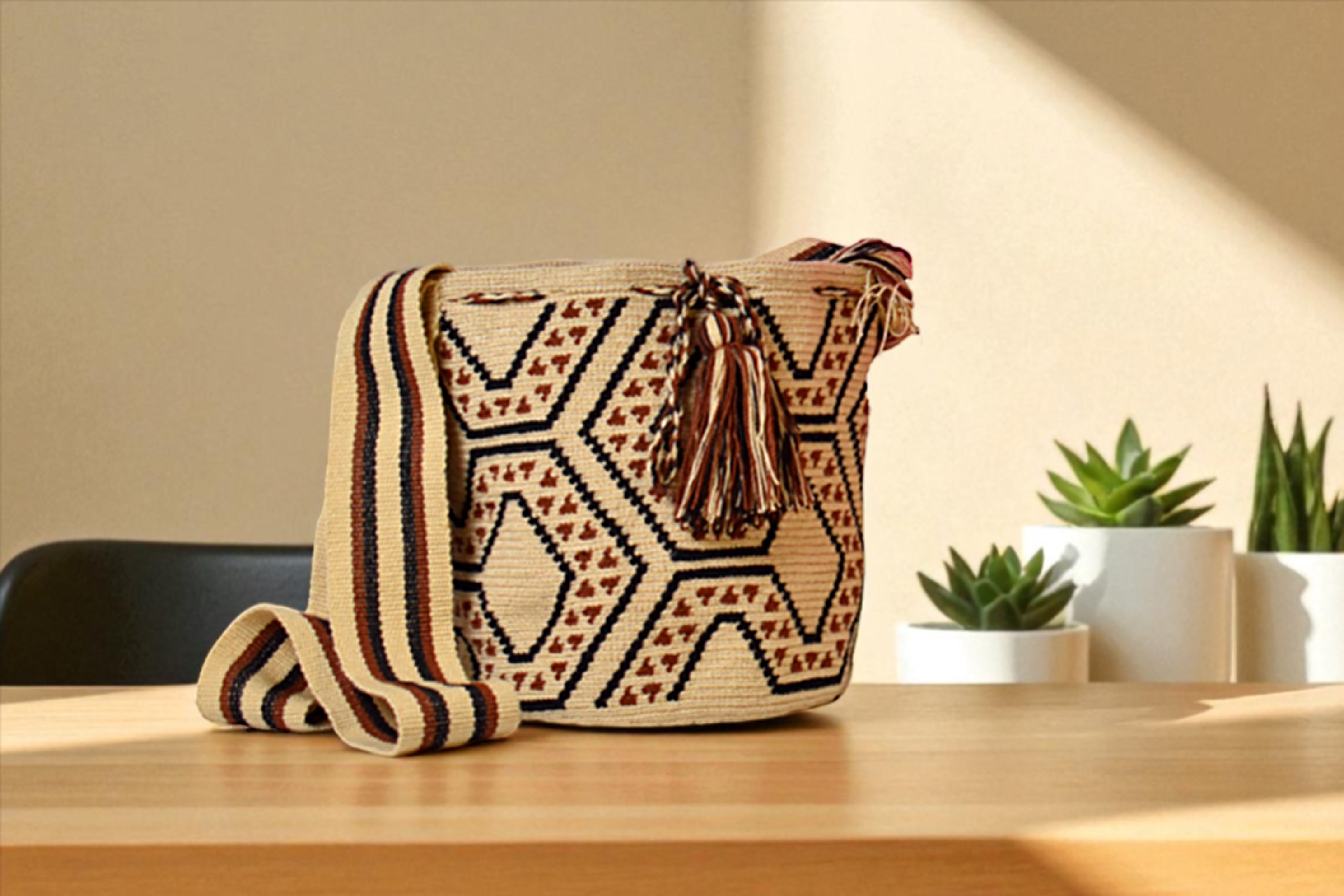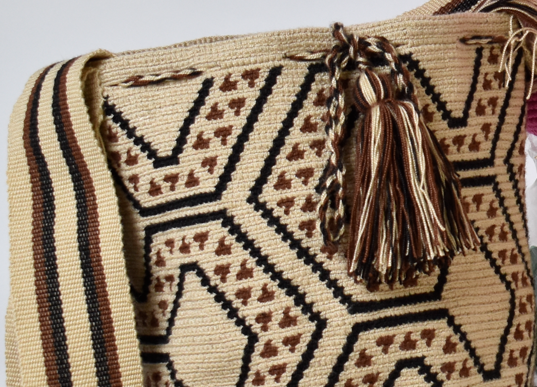 Descipcion: Hecho a mano en tejido a crochet, color beige y cafe oscuro, decorada recamada, envío incluido