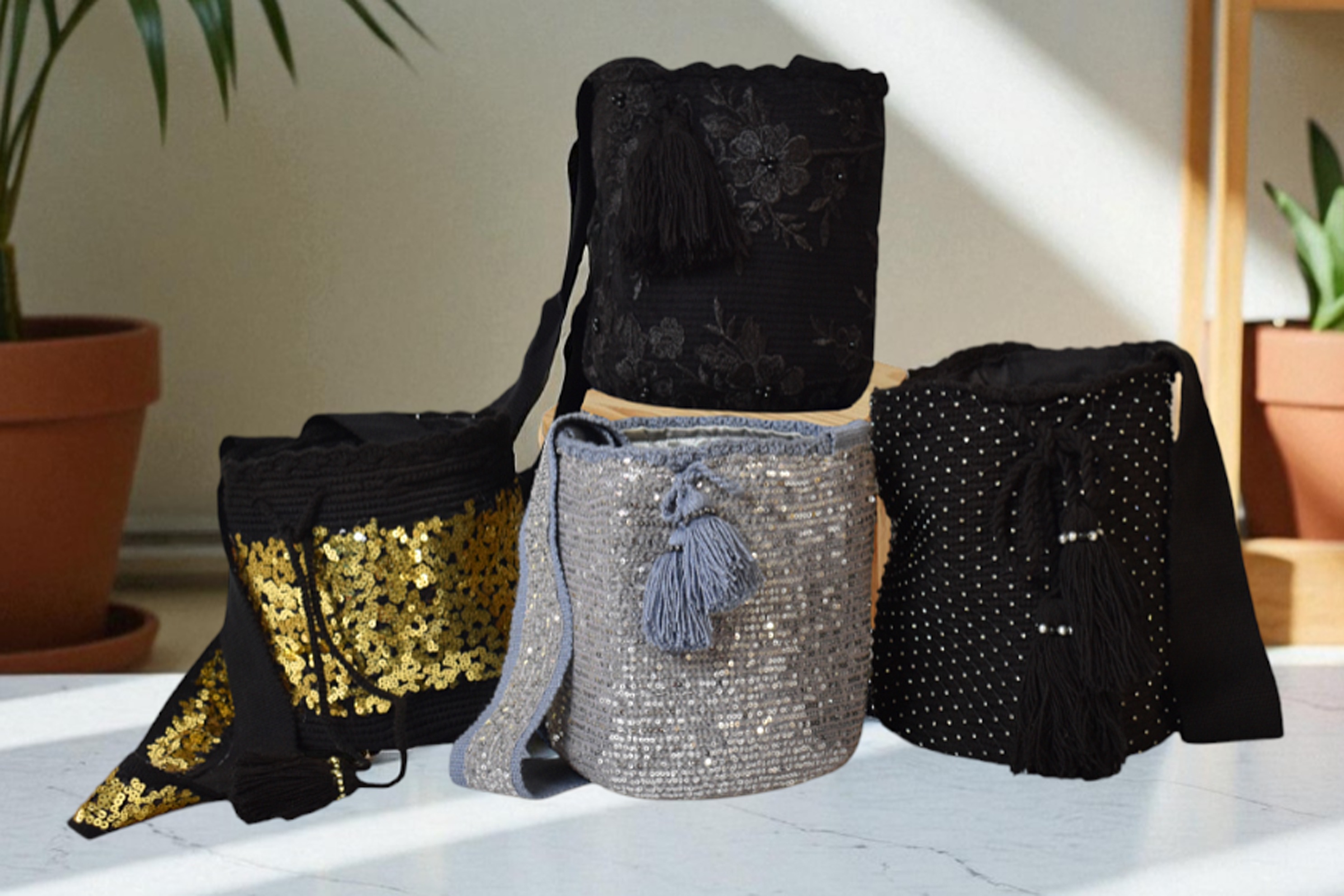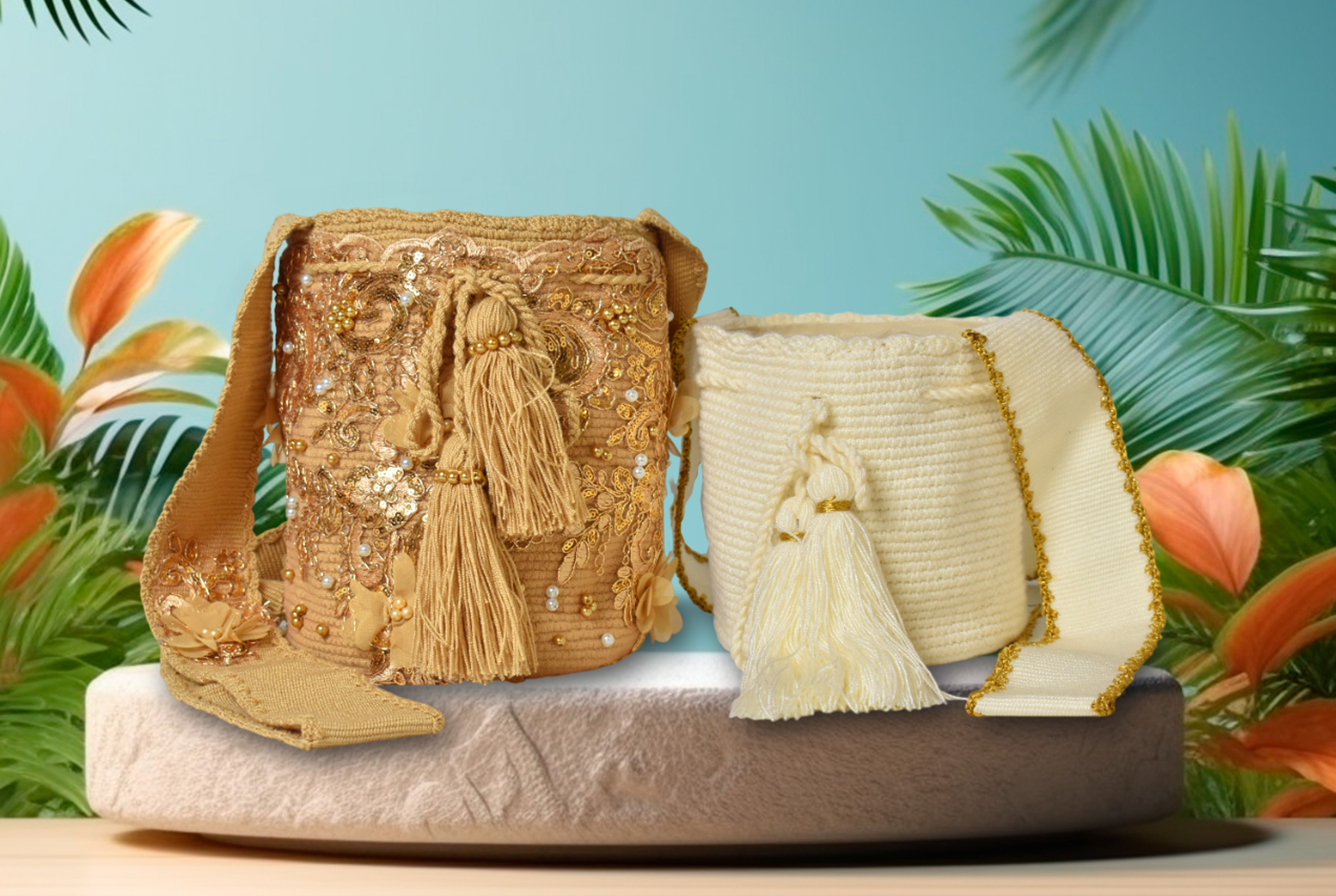 Descipcion: Hecho a mano en tejido a crochet, recamada con tela y lisa, colores surtidos perla y dorado, venta por unidad y combo, envío incluido.